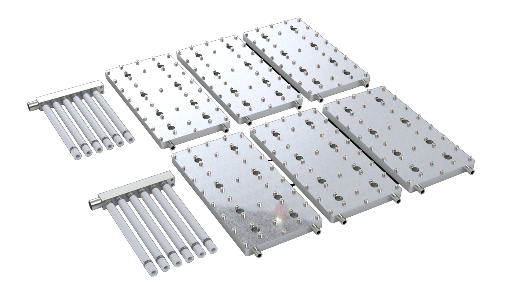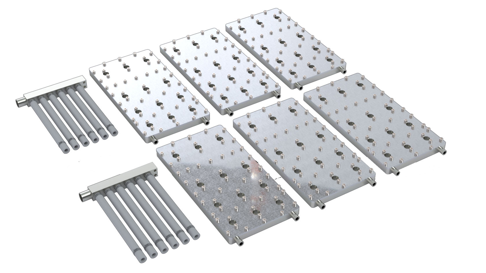 Kit includes: 6 waterblocks, 2 manifolds, 12 silicone tubes, clamps.